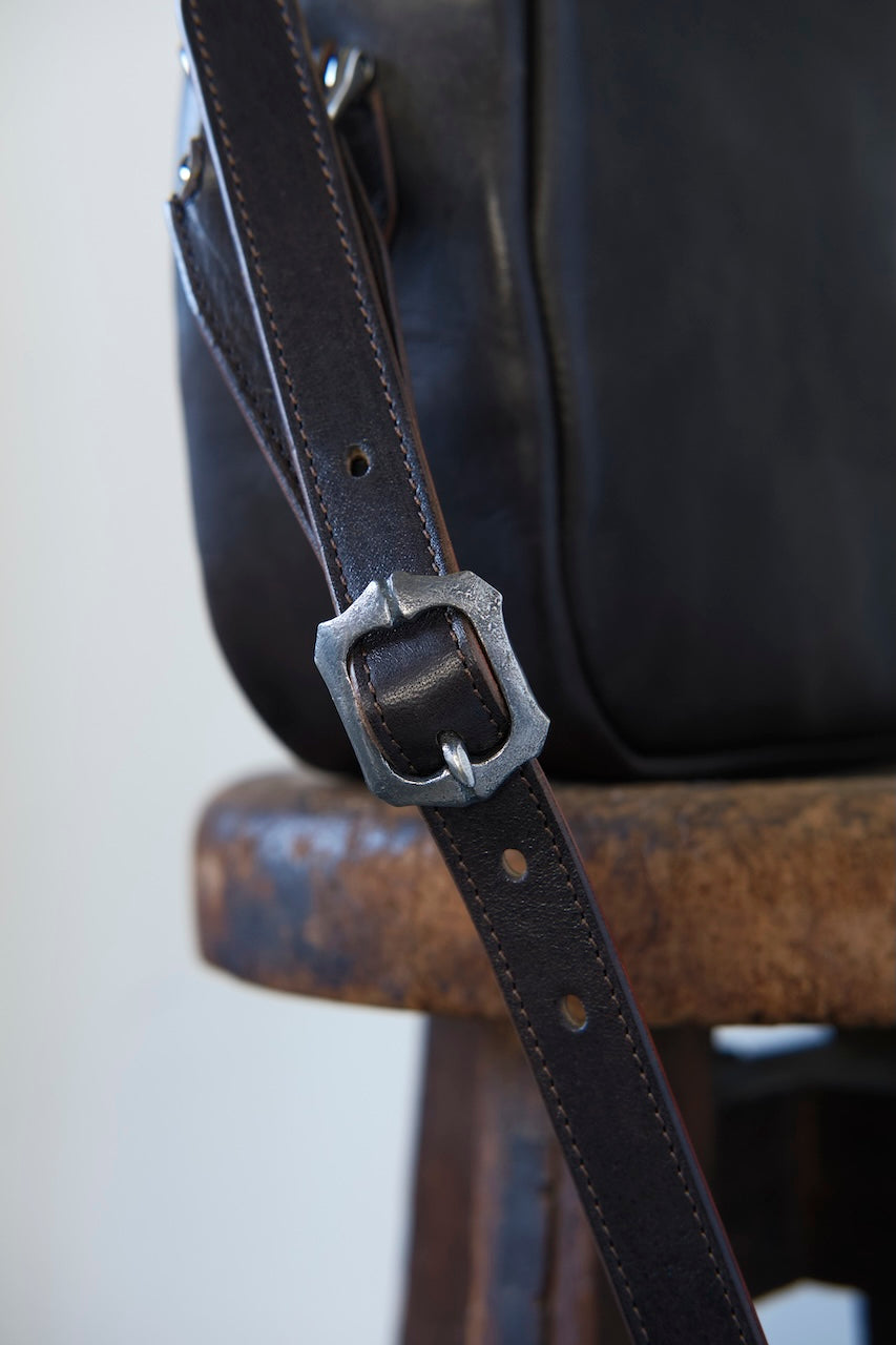新喜皮革製茶芯ブラックのパラフィンフィニッシュホースレザーを使用した