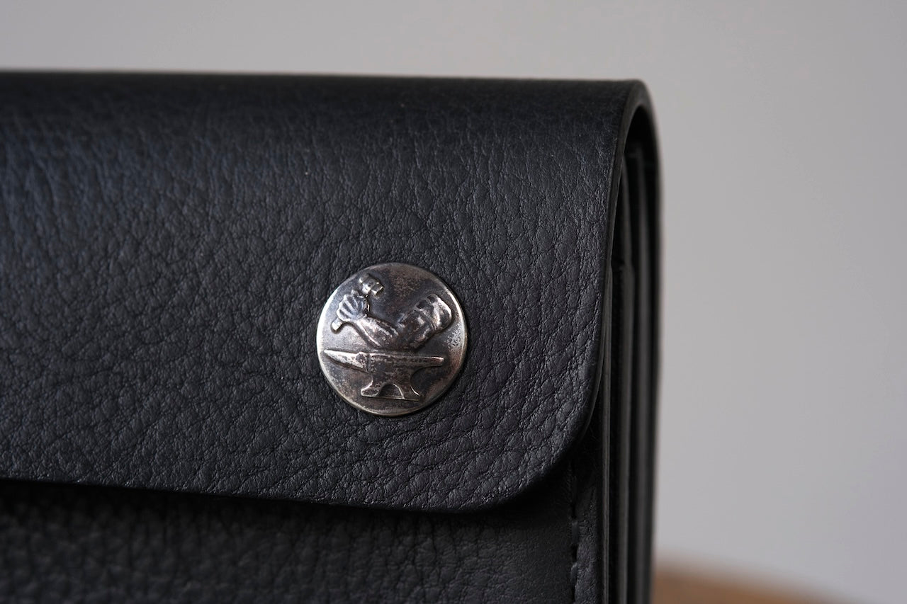 ミネルヴァボックスBLACKを用いたオール手縫いによるデベロップバイカーウォレットです。